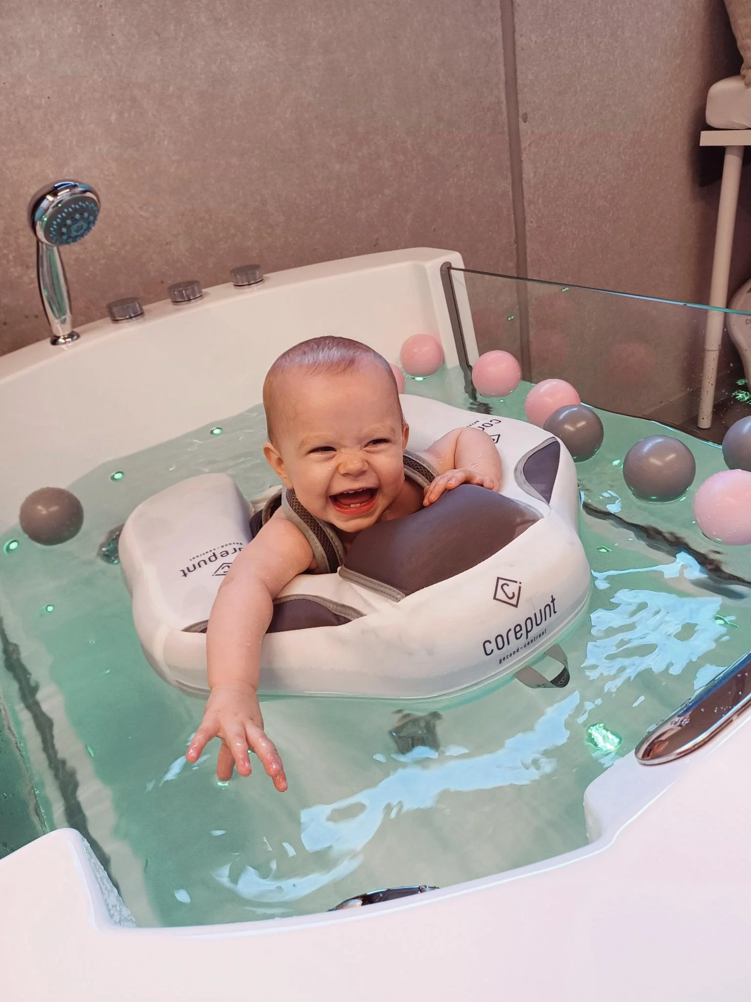 Laat je baby volledig tot rust komen in ons vrij van chloor, verwarmde water met zachte bubbels. Tijdens een sessie van 25 minuten ervaart je kindje op een veilige en speelse manier de vrijheid van bewegen in het water.